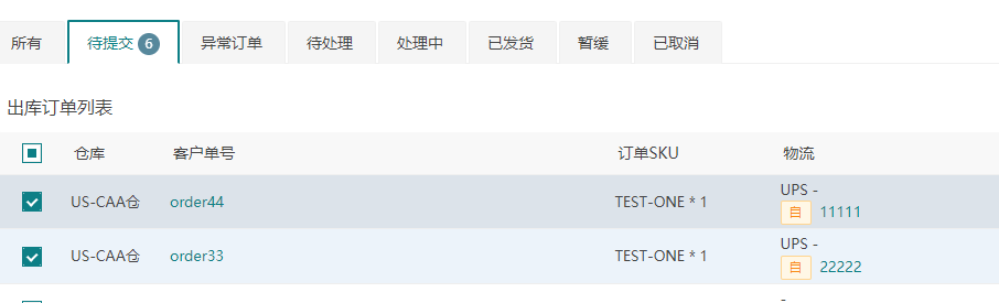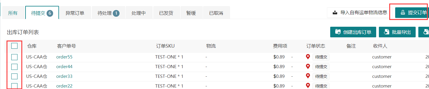 (2)导入的订单在待提交页面,勾选订单批量设置为自有运单