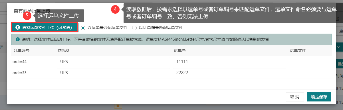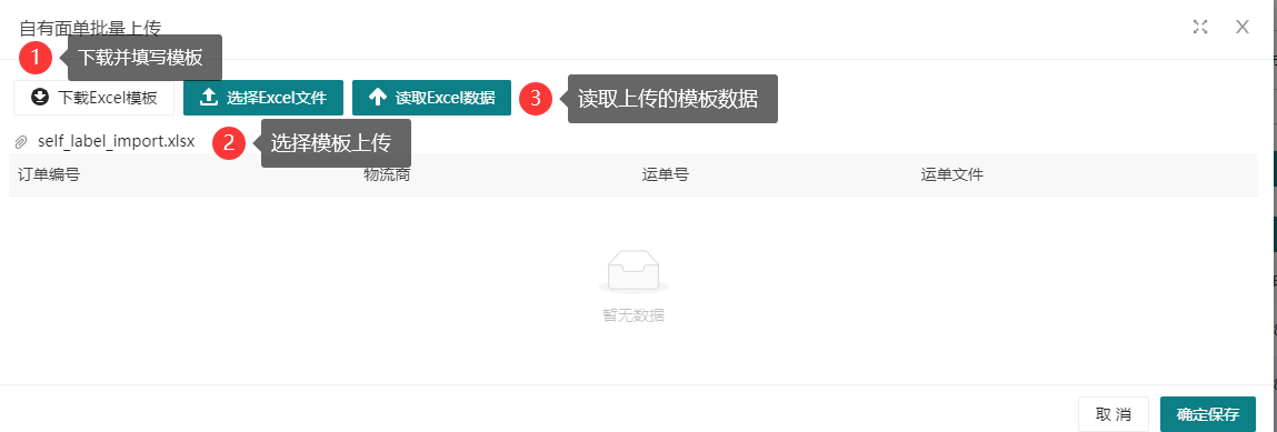 (3)点击导入自有运单下载并填写模板,导入订单号和运单号信息