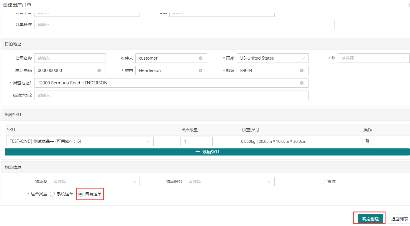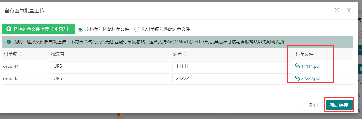 1.单个上传运单,在创建订单时选择运单类型为自有运单