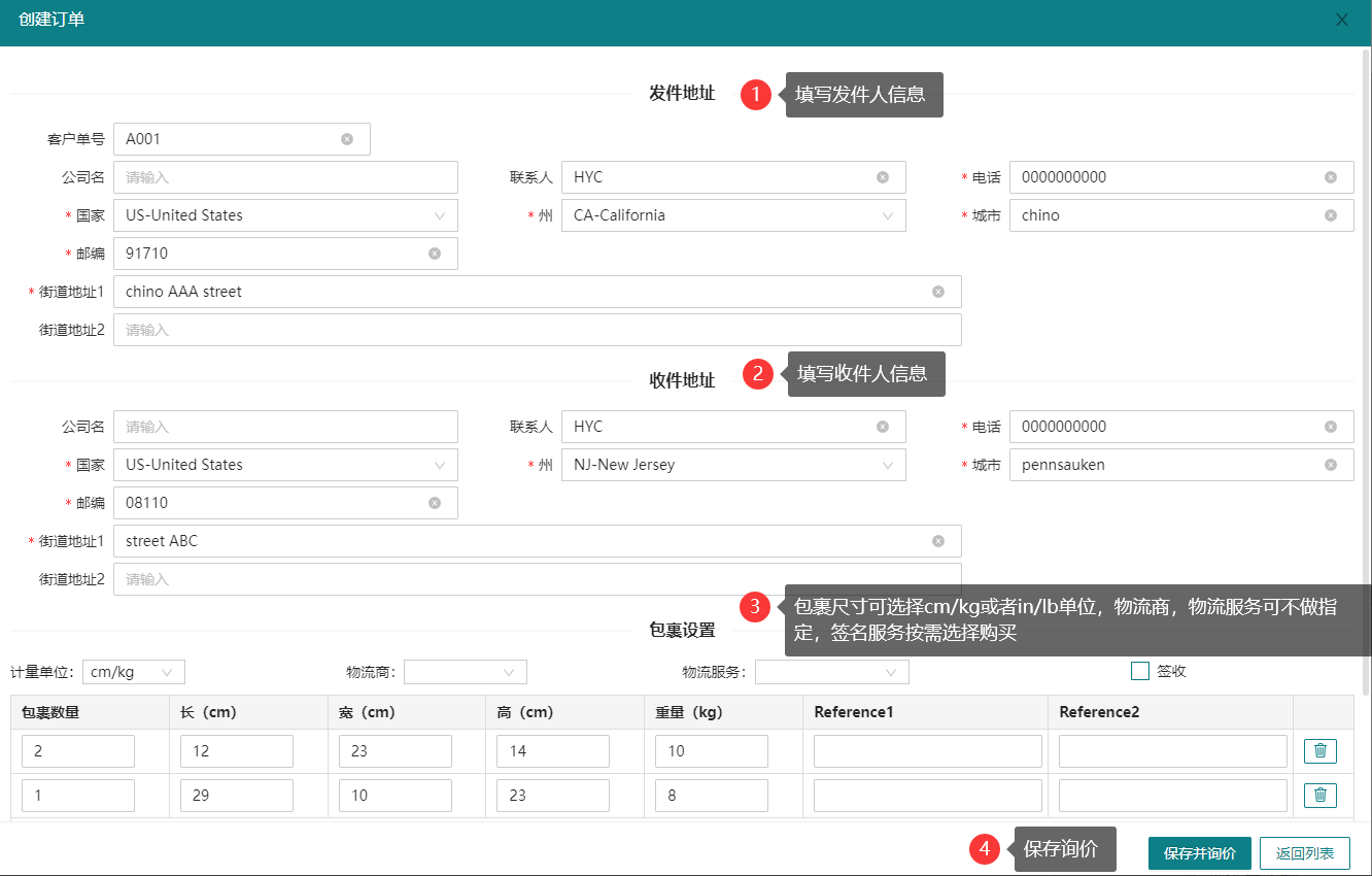 三、填写运单详细信息